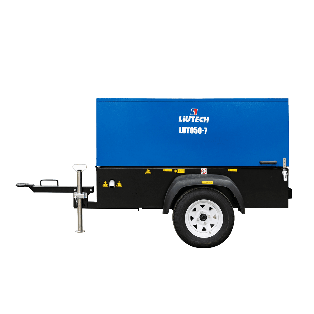 El compresor portátil Liutech LUY050-7 ofrece un alto rendimiento para minería y construcción, entregando un caudal constante de 185 cfm a 7 bar de presión. Equipado con un motor Kubota V1505T y un diseño robusto, asegura eficiencia energética y fiabilidad operativa incluso en condiciones adversas.
